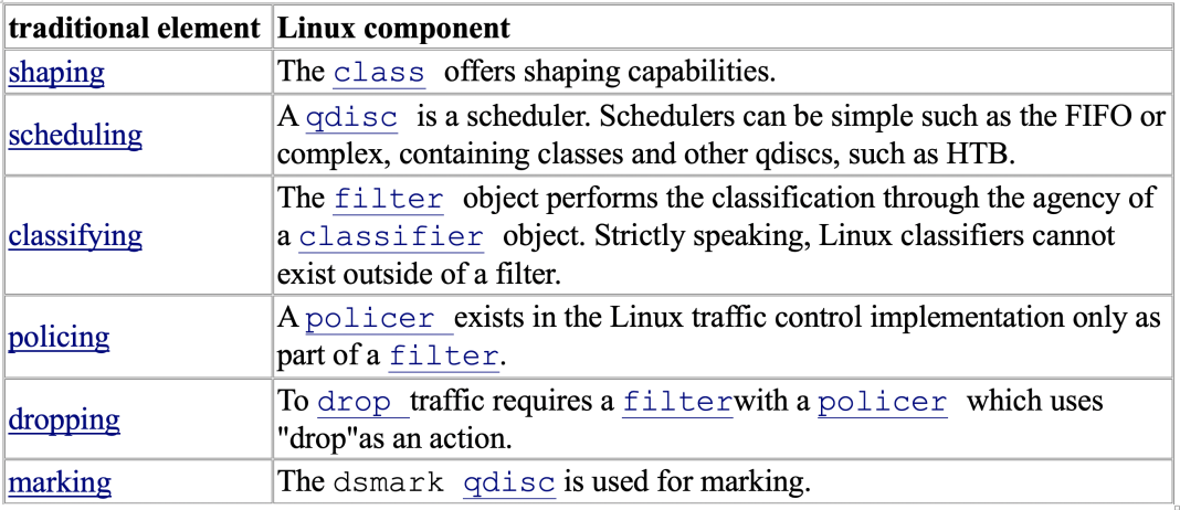 通用的流量控制与Linux TC的实现对应关系如下: