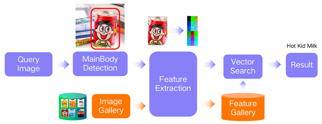 向量检索:不同于单一模型直接输出类别信息,对于未知类别只有模型重训一个选择,耗时又耗力。PP-ShiTu引入向量检索,通过计算目标物体和检索库中图像的相似度来输出类别信息,一次训练长期使用,高效又便捷。