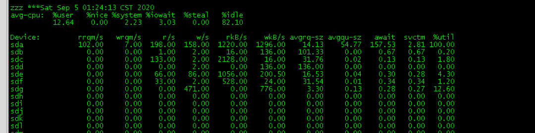 发现本地磁盘使用率持续偏高,存在性能瓶颈;存在/u01读写慢,引发进程僵死的可能性。