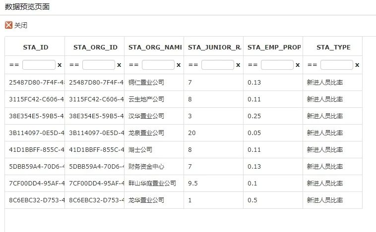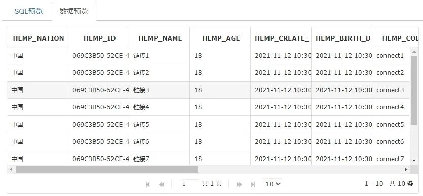 之后点击数据预览,上方会出现一个全新的标签,点击切换到数据展示页面,我们就可以看到我们拼接的SQL读出的数据,如下: