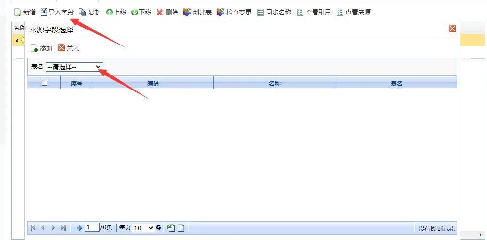 除此之外就是字段相关的功能改造,因为我们在明细页面选择了来源表,因此在字段信息页面的倒入字段功能中,仅可以在你选择的来源表中倒入字段,具体样式如下: