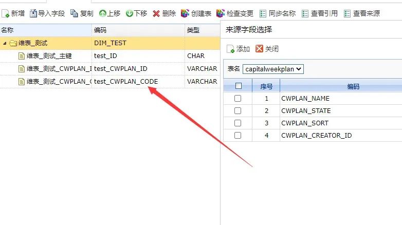 上图中的CODE字段被选择又在页面中执行了删除操作,便出现了上方第二张图的场景。以上便是维表改造的所有功能。接下来,事实表存在相关的主题分组,因此我们在进行编码命名的时候不能只有死的前缀还需要增加主题分组编码,具体样式如下: