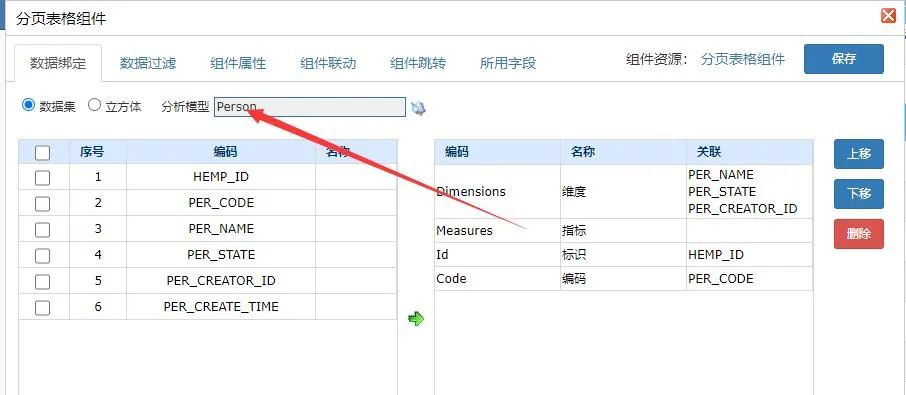 接下来我们可以在相应的导航管理配置页面的组件上,选择已经配置好的的数据集或是立方体,到此整个调用的过程就配置结束了。下面是组件配置数据集或是立方体的页面,如下: