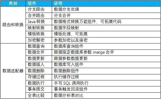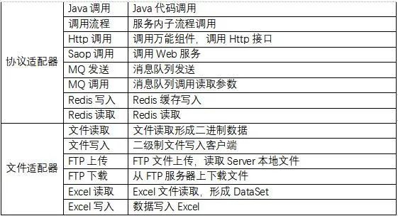 ESB设计器内组件包括数据适配器、协议适配器、文件适配器以及流程接入器,下文对各个组件进行简单介绍。