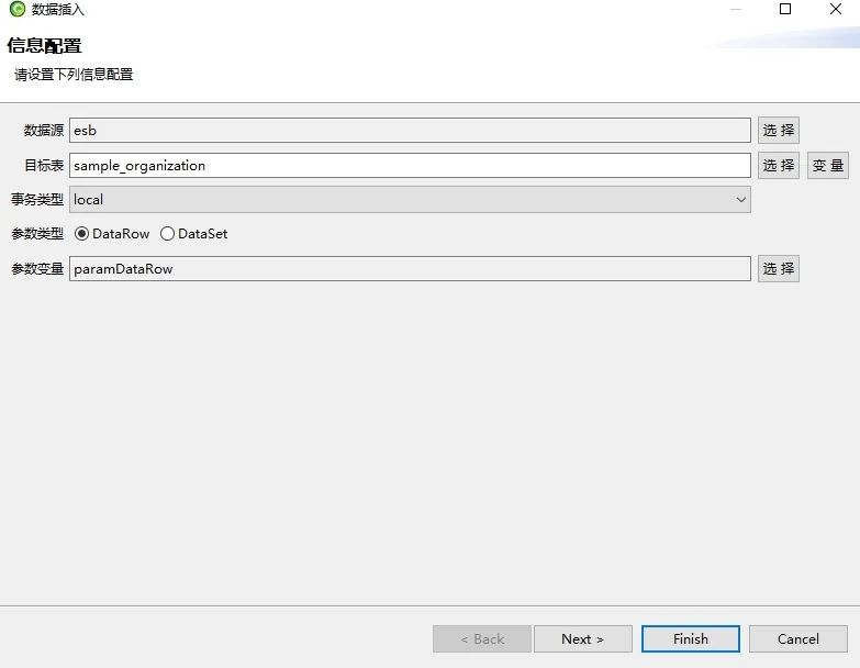 e)选择字段:从数据库中选择需要更新、变更的字段,点击Next后会更新是需要更新的字段信息,如果选择字段和来源变量中的字段相同则执行更新操作,如果不同则执行插入操作。