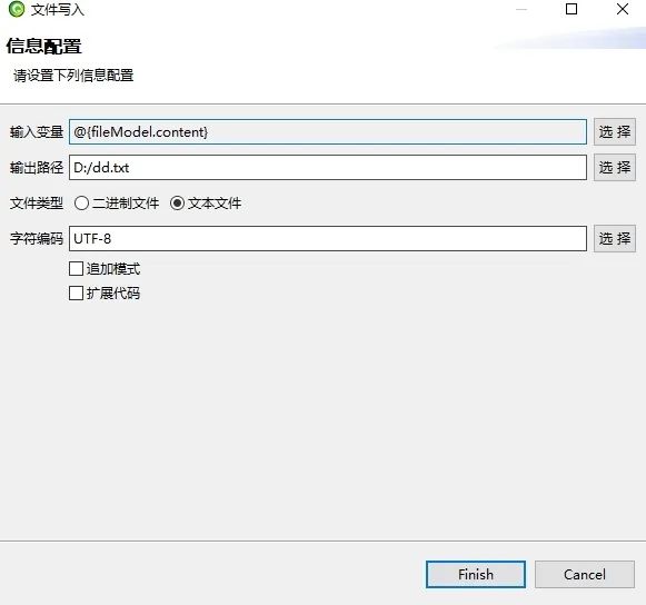 a)文件路径:读取windows系统或者Linux系统的文件路径,注意符号要用“/”;b)输出变量:可以将文件读取形成二进制文件以及文本文件;2.文件写入:将二进制或者文本文件写入服务端其它位置。