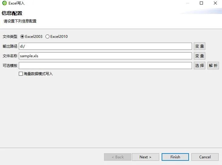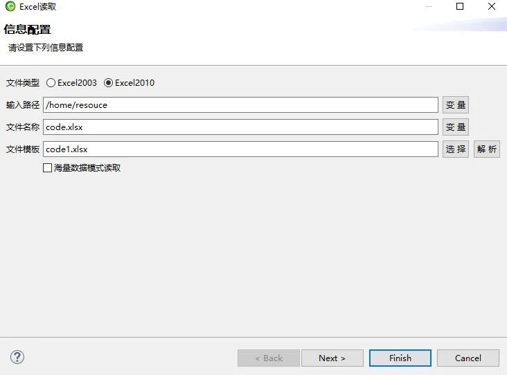 Excel表格的读写主要是对服务端的Excel文件进行读取,形成DataSet数据格式数据,完成对表格的读写,主要包括Excel读取、Excel写入组件,接下来对上述组件进行介绍。1.Excel读取:读取windows或者Linux系统指定目录下的Excel文件,转换成DataSet数据格式;