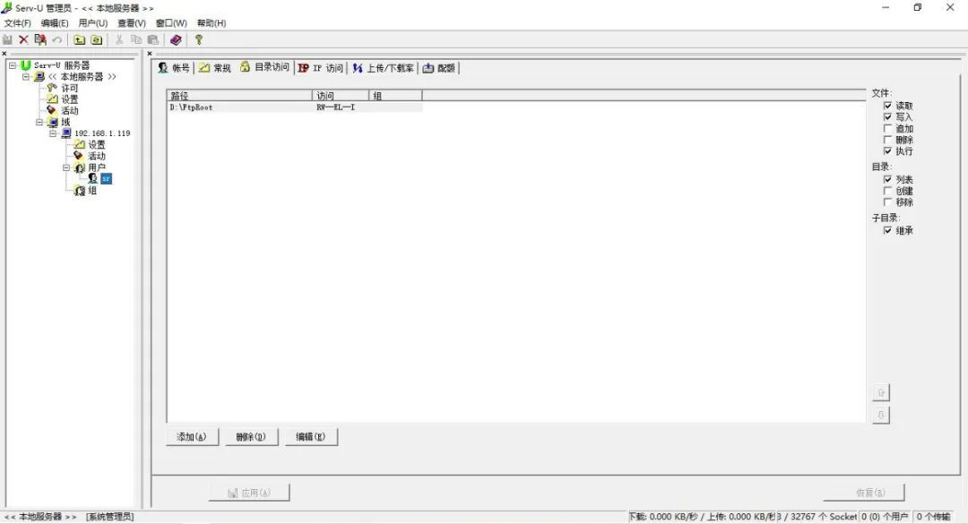 文件写入和文件读取操作方法相似,在此不做过多赘述。FTP文件的传输需要搭建Serv-U服务器,在搭建完成后需要在SMC进行注册,Serv-U服务器搭建完成效果如下: