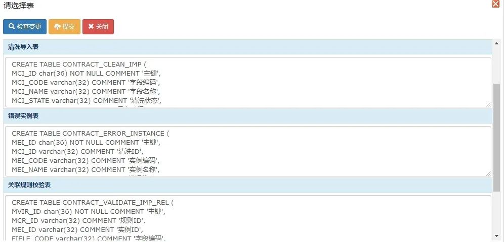 配置好校验规则后点击提交按钮就会跳转到创建表的页面并生成数据清洗相关的那四张表,点击创建和提交,数据建模部分相关的配置就完成了。