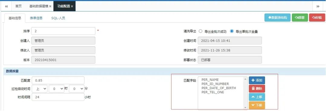 功能建模配置的另一个是,巡检匹配字段,也就是清洗数据重复校验的字段,如图所示:
