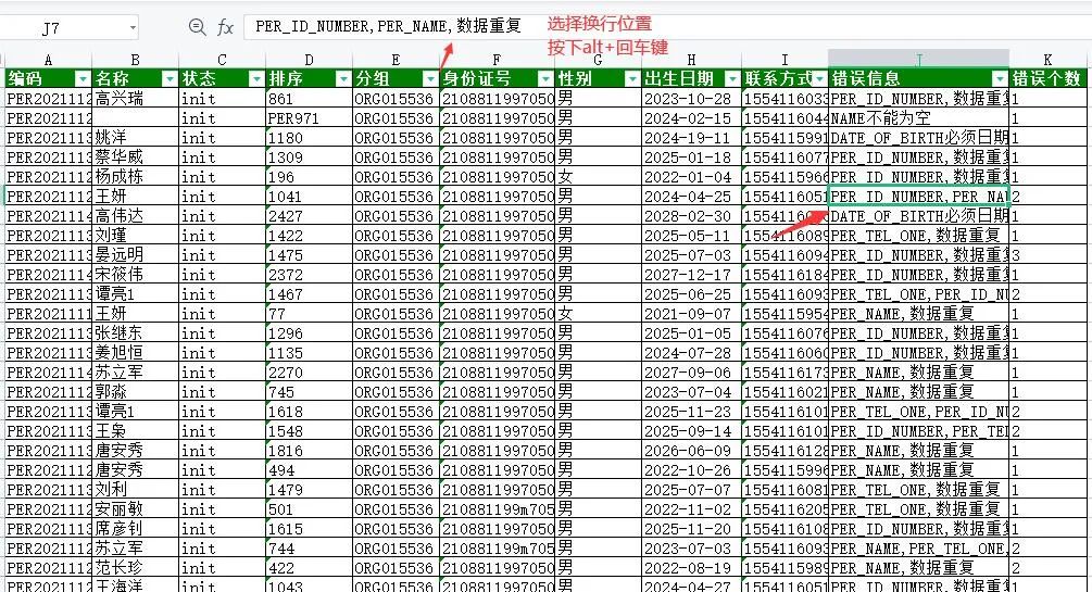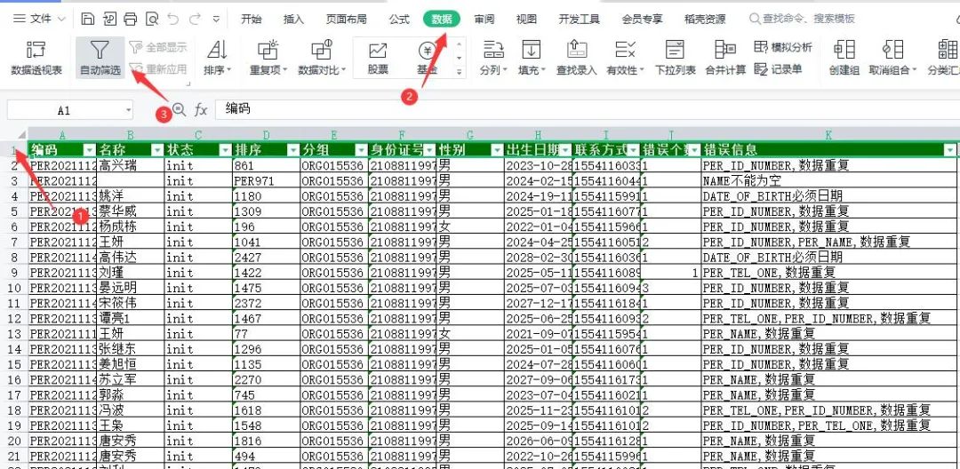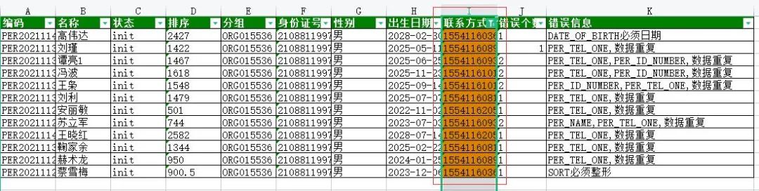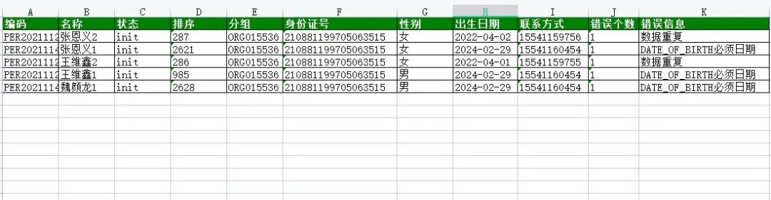 错误信息表用于存放导入过程中不符合校验规则的数据,这个是按照字段来导入的,一条数据的一个字段错误则为一条错误数据。