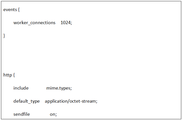 3.http块:可以嵌套多个server,配置代理,缓存,日志定义等绝大多数功能和第三方模块的配置。如文件引入、mime-type定义、日志自定义、是否使用sendfile传输文件、连接超时时间、单连接请求数等。