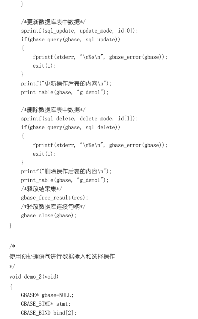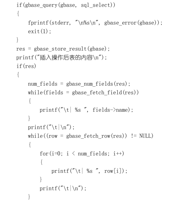 GBase 8a 程序员手册C API篇_5 GBase C API 应用示例(4)