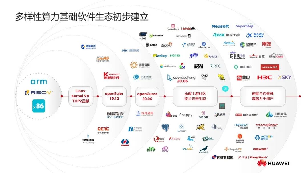 华为计算产业基础软件战略进展与展望峰会在上海举行,向业界展示了全面启动基础软件开源项目后的成果,四大开源基础软件openEuler, openGauss, openLooKeng以及MindSpore生态初步建立。
