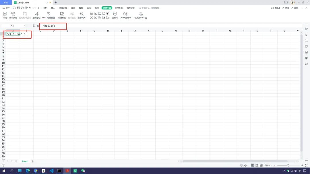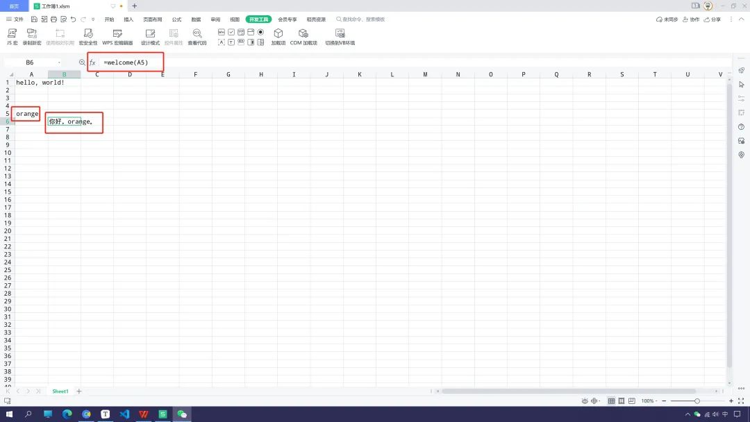 单元格输入公式,调用函数welcome()