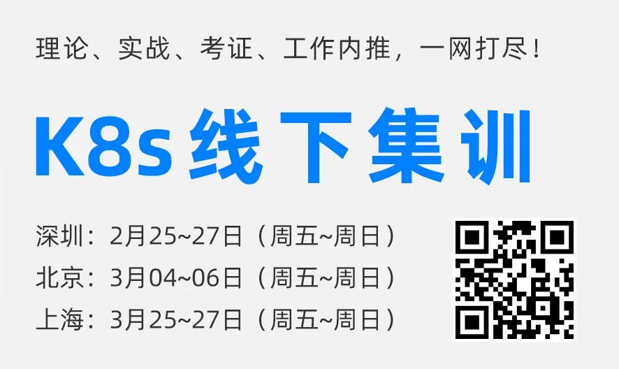 新的一年,想一起学习K8s、考CKA证书吗?来,这里有最好的学习方案,线下3天封闭式培训,15人小班课,考不过免费复训。Kubernetes实战班,北京、上海、深圳三站齐发,扫描下方二维码了解详情。