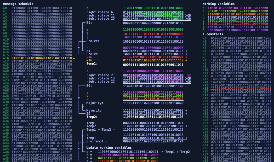 这个项目通过可视化的方式,让你更为直观的理解 SHA256 算法原理。