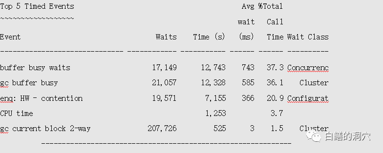这种问题往往伴随gc相关的问题。这是RAC环境下的BBW,其产生的主要原因都包含在上面的情况里了,只是应用跑在RAC的多个节点上,把BBW扩大到了RAC范围了。其主要的成因除了集群网络方面的问题(比如吞吐量过大,网络延时过高、网络丢包等)外,其他的成因和上述几种场景类似。
