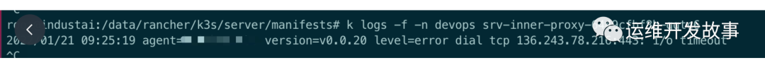 我们一个agent代理服务,发布到k8s集群之后,pod状态是Running,但是server一直无法收到心跳信号,因此到集群内部去排查日志,发现该服务日志中出现大量的连接某一个ip地址tcp timeout