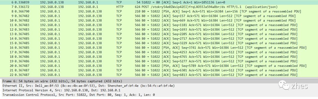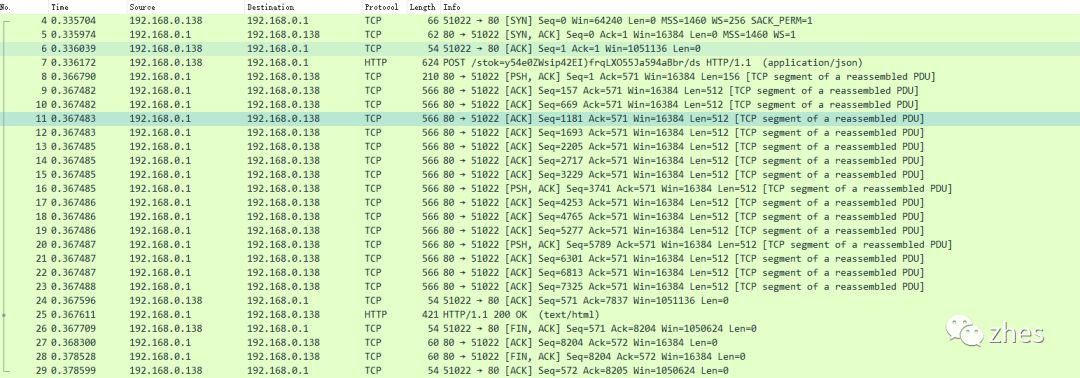 在wireshark的抓包分析中,可以看到在发送HTTP请求之后有一长串的TCP请求,由服务端发送到客户端。这部分根据网上查到的资料,这里的分段是上层协议HTTP的应答由多个分段组成,每个分段都是TCP协议的。TCP本身没有分段的概念,他的sequence number和acknowledge number是TCP基于流的协议的支撑。