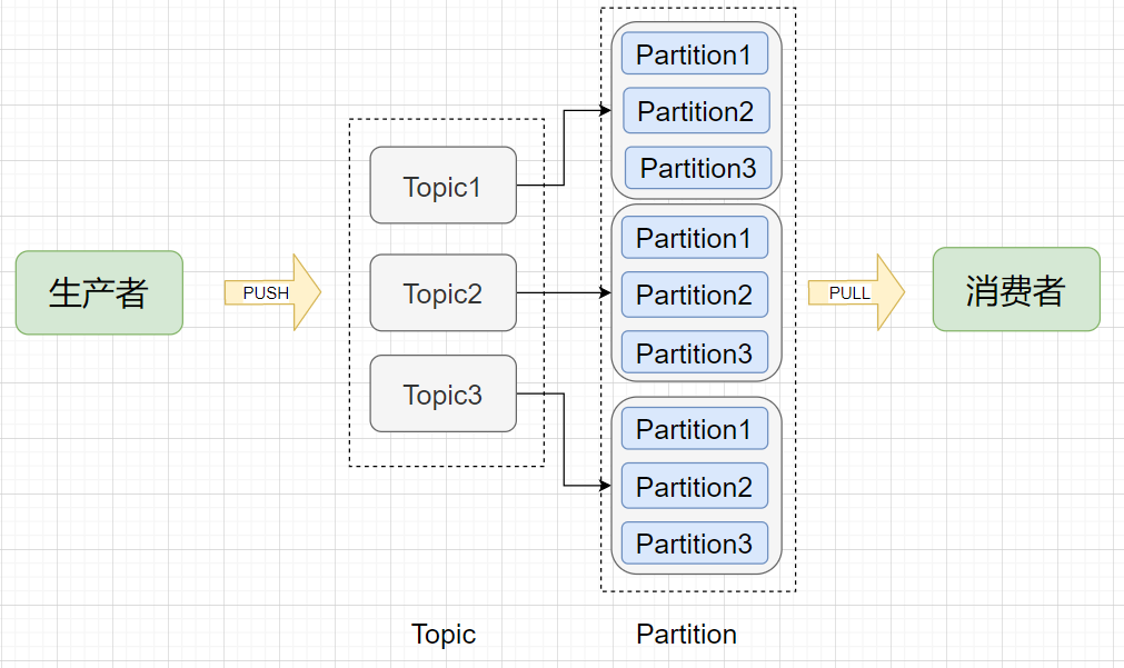 Topic(主题):在 Kafka 中消息以主题为单位进行归类,每个主题都有一个 Topic Name,生产者根据 Topic Name 将消息发送到特定的 Topic,消费者则同样根据 Topic Name 从对应的 Topic 进行消费。