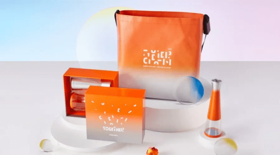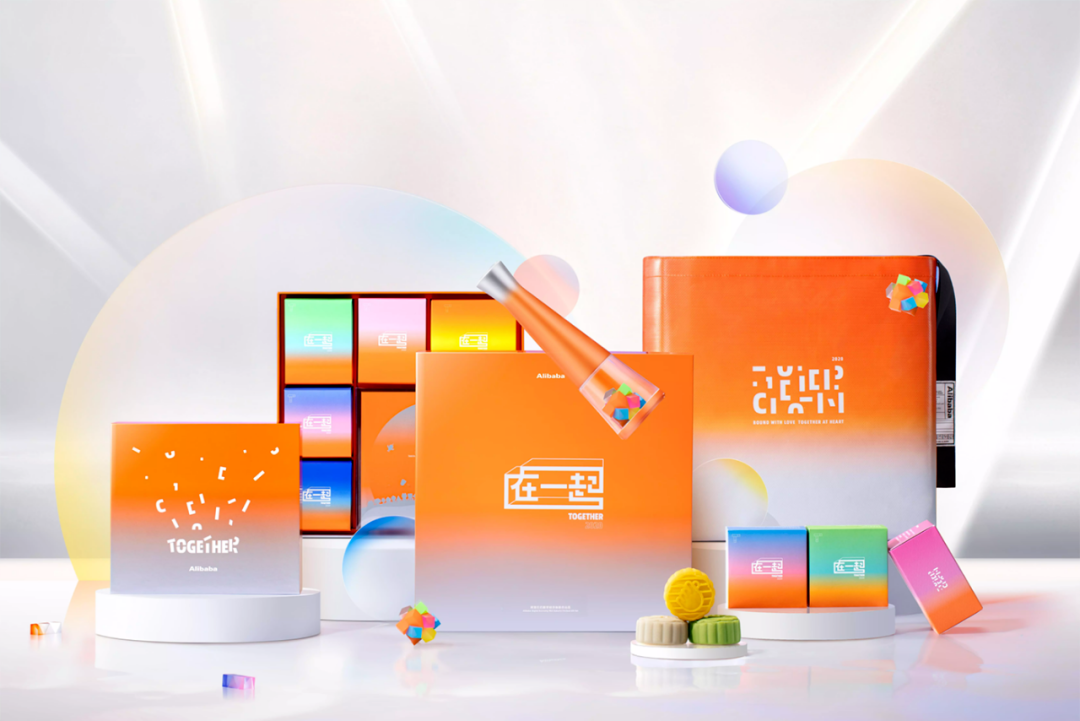 首先出场的是阿里巴巴,每年阿里的月饼包装都是橙色为主调,主题依旧为“在一起”的情怀路线: