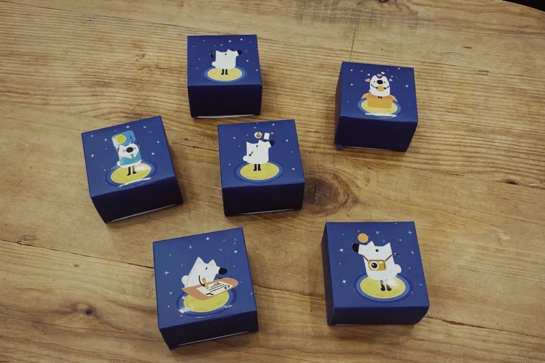宇信科技的礼盒内有6款守护宇信的超人宇,分别是星爵宇、浣熊宇、宇小格、宇克斯、螳小宇,每个小宇都配有一个可可爱爱的小帽子,十分有趣。