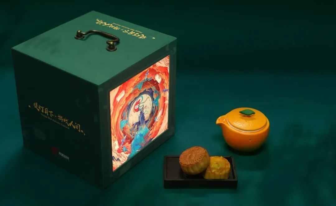 网易游戏的中秋礼盒主题是“提灯月下,游戏人间”,整个礼盒设计以灯笼的透光感为灵感源泉。