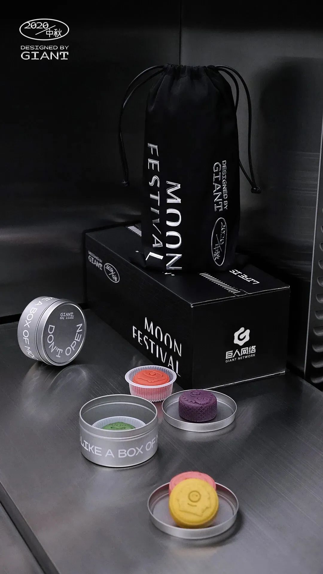 今年巨人网络的月饼主打黑色的色调,颇具神秘感和科技感,手拎袋包装,环保又时尚。