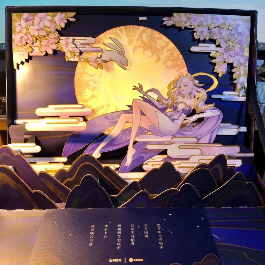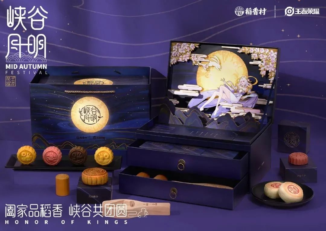 王者荣耀今年的月饼礼盒主题是“峡谷月明”,携手稻香村联合打造,嫦娥小姐姐的剪影插画好美。