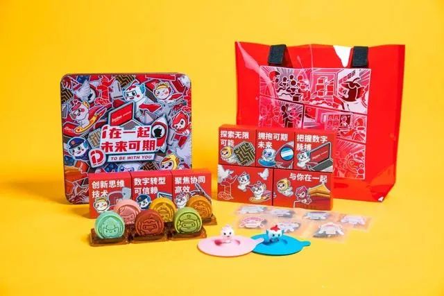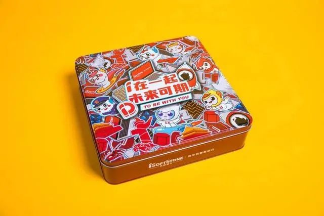 软通动力的月饼也很精致,小铁礼盒里面装着大世界,不仅有美味的月饼还有各种公仔挂饰哦。