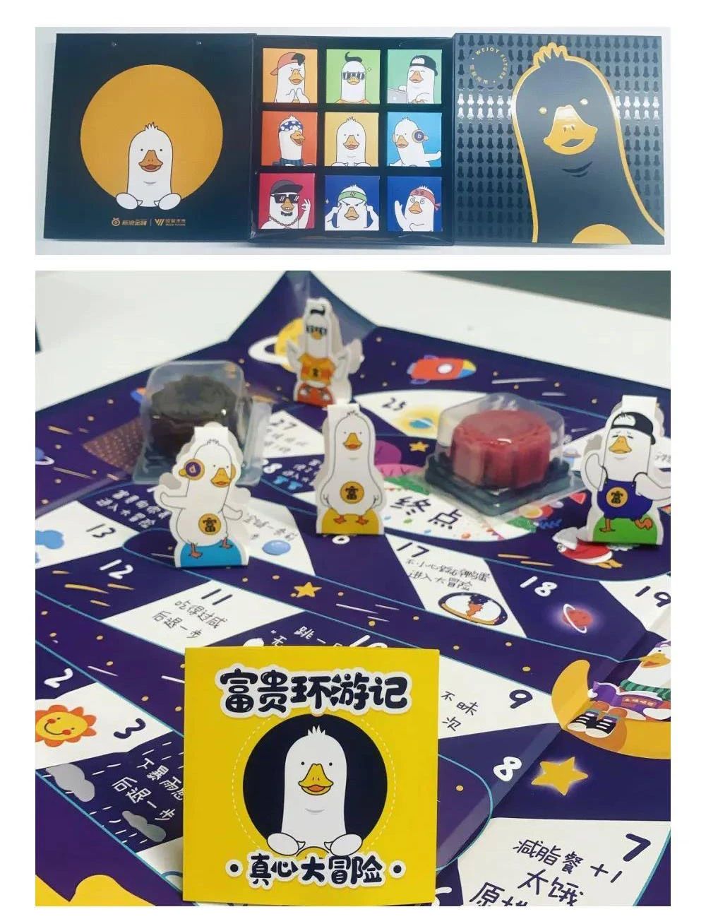 新浪金融设计了一个李富贵的卡通形象,月饼礼盒内还有一套“富贵环游记”的真心话大冒险游戏,可以从中找回童年的回忆。