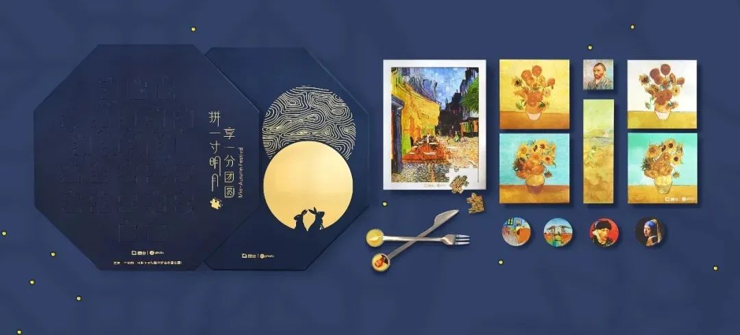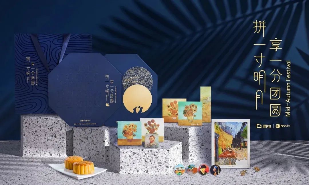 图虫今年的中秋主题是“拼一寸明月,享一分团圆”,艺术气息十分浓厚,每个装月饼的盒子都是一副世界名画,这扮相确实高级,谁让人家是设计师最爱的网站呢。