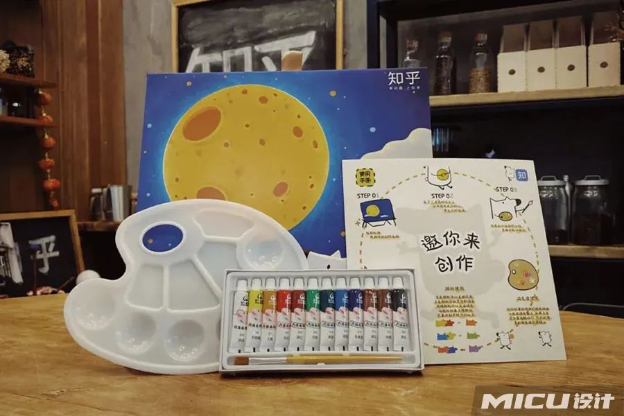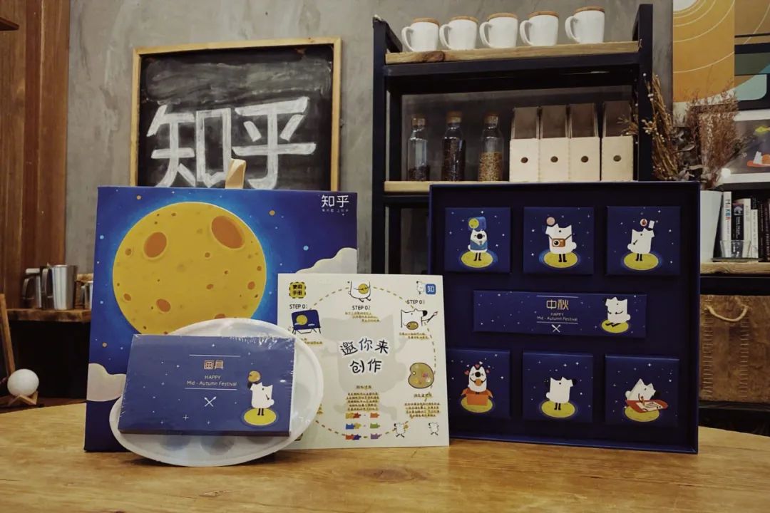 知乎今年月饼的主题是“邀你来创作”,礼盒内除了六个月饼之外,还有一副水彩盘,尽情发挥你的创作吧。