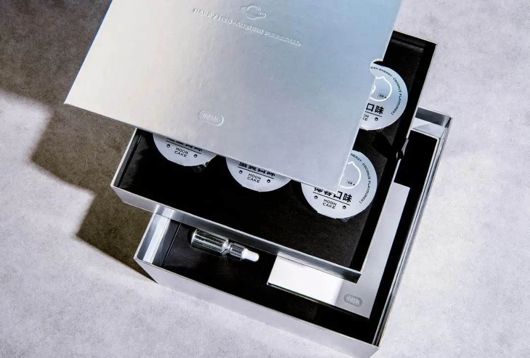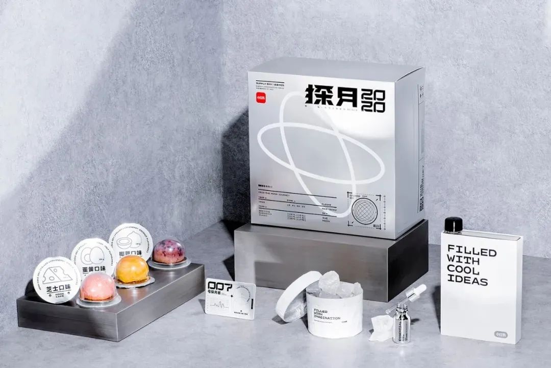 礼盒内采用分层设计,第一层是6个不同口味的月饼,第二层是一套晶石香薰、一个冷水壶,分别对应filled with energy、imagination、cool ideas的补给概念。