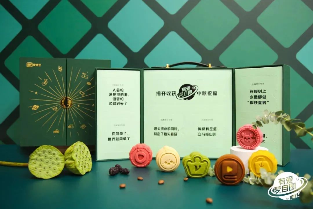 爱奇艺中秋礼盒的主题为“有爱梦自圆”,爱除本义外也象征爱奇艺,爱奇艺精彩丰富的节目内容和创新技术让用户、员工和创作者们圆梦。