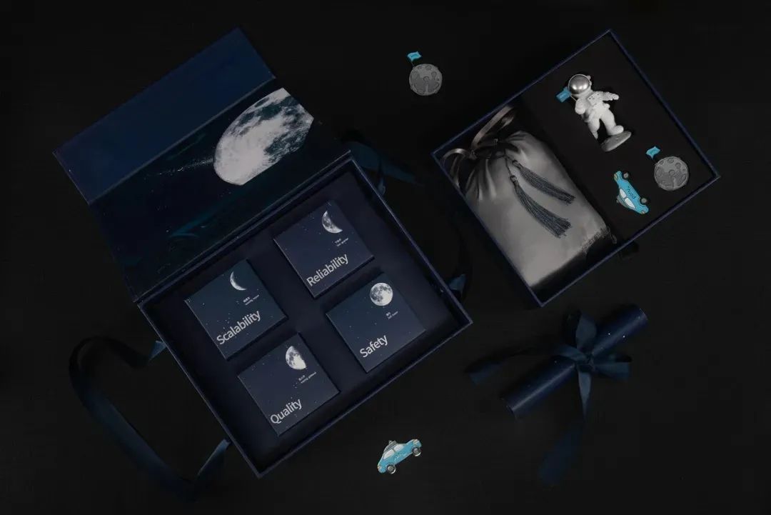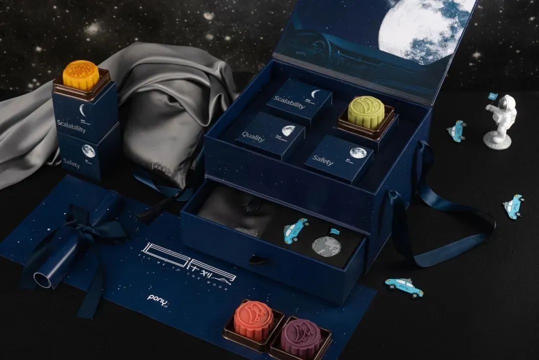 小马智行的月饼甄选自希尔顿集团定制,多种口味随机搭配,礼盒内除了一个宇航员公仔之外还有一对真丝枕套,相当贴心。