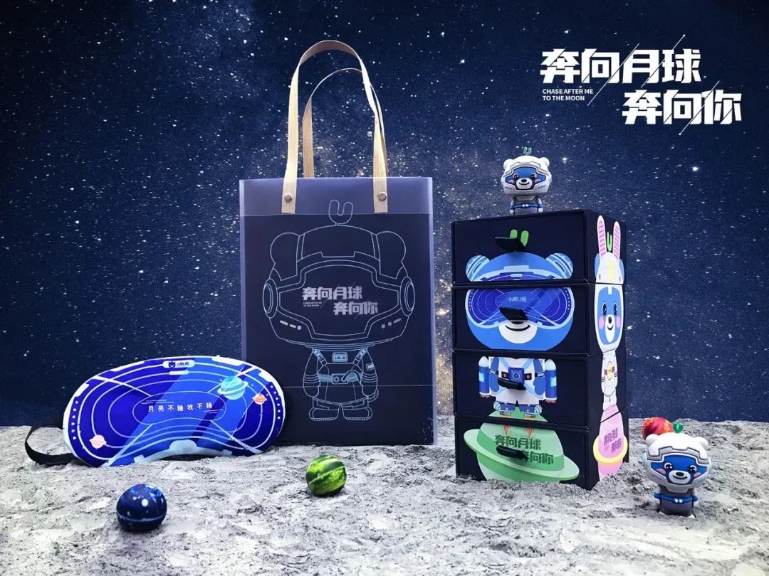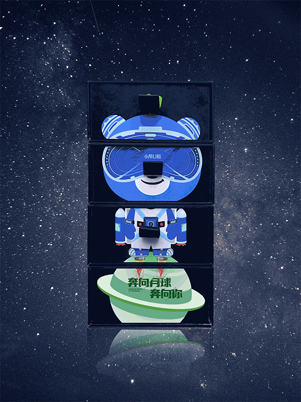 小熊U租的主题是“奔向月球,奔向你”,礼盒可以旋转,变换多种不同的小熊形象。