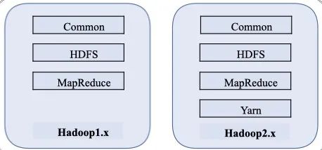 Hadoop2.x:Common(辅助工具)、HDFS(数据存储)、MapReduce(计算)、Yarn(资源调度)