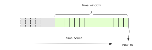 图中绿色的部门就是我们要保留的一个时间段的时间序列信息,灰色的段会被砍掉。统计绿色段中时间序列记录的个数就知道是否超过了频率的阈值。