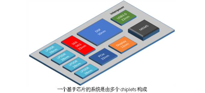 这分解芯片的想法可以提高产量和比单片模具更低的成本。Chiplets允许设计者利用各种各样的IP而不必考虑它们是在哪个节点或技术上制造;它们可以在硅、玻璃和层压板等多种材料上建造。