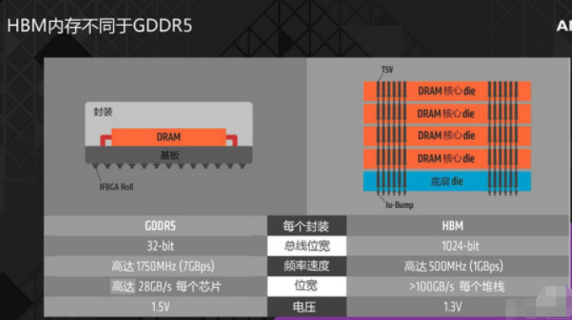 如今,GDDR5经过这么多年的发展已然来到了一个瓶颈,光靠频率提升来提供更大的显存位宽已经没有太大空间,而这势必会反过来影响到GPU的性能发挥。相对于传统的GDDR5显存来说,HBM无疑是更加先进。