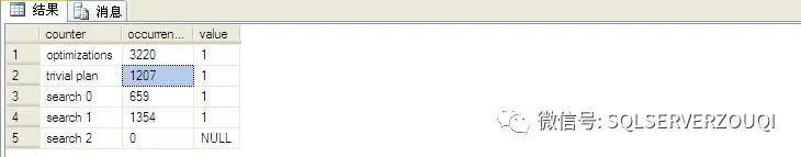 dbcc freeproccache --清空执行计划缓存select * from sys.dm_exec_query_optimizer_info where counter in('optimizations','trivial plan','search 0','search 1','search 2')