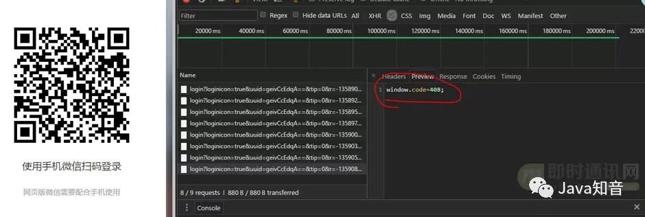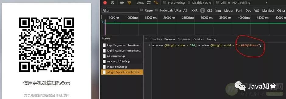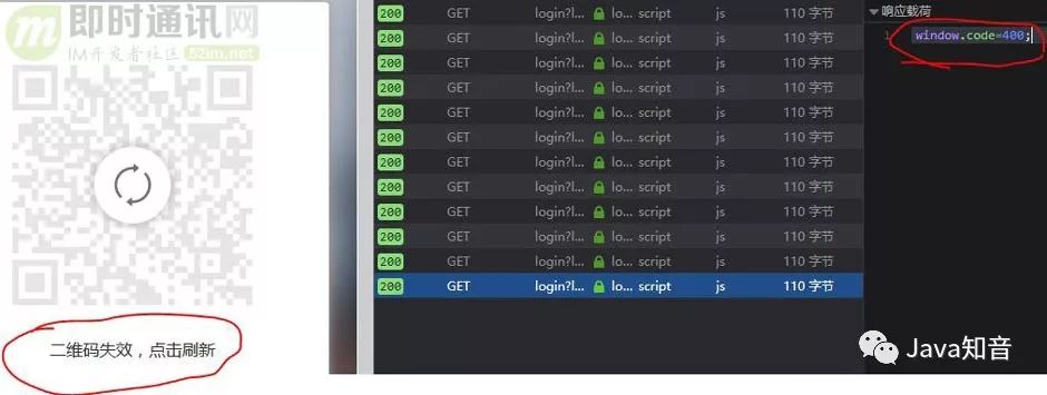 微信网页端扫码登录时,轮询的数据返回采用的是JSONP的形式,这是为了解决跨域问题。如对JSONP不了解的,可以参考: