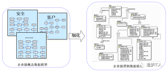 在概念模型基础上,再进行企业级逻辑数据模型的建设,但企业级逻辑数据模型一般都包含几千上万的个业务实体及其复杂的关系,这对于从概念模型到逻辑模型的构建是个巨大的挑战。