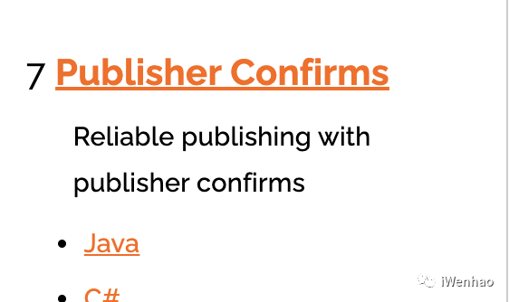 public class Producer {public static void main(String[] args) throws IOException, TimeoutException, InterruptedException {Connection connection = RabbitMqUtils.getConnection();Channel channel = connection.createChannel();/*** 开启监听模式** confirm 和 return 都是 生产者 和 broker 之间的关系, 和消费者无关.*/channel.confirmSelect();// 监听消息是否到达 exchangechannel.addConfirmListener(new ConfirmListener() {@Overridepublic void handleAck(long deliveryTag, boolean multiple) throws IOException {System.out.printf("消息到达了 exchange " + deliveryTag);}@Overridepublic void handleNack(long deliveryTag, boolean multiple) throws IOException {System.out.printf("消息不能到达了 exchange " + deliveryTag);}});// 监听消息是否到达 队列/*** 在 topic 的模式下 如果消息 路由key 找不到指定的 队列, 就会存在被 return的情况** mandatory 必须设置成 true*/channel.addReturnListener(new ReturnCallback() {@Overridepublic void handle(Return returnMessage) {System.out.printf("消息被退回 return ");}});String msg = "确认消息 aaa.aaa";String msg2 = "到不了的消息 aaa.bbb.aaa";/*** mandatory true代表如果消息无法正常投递则return回生产者,* 如果false,则直接将消息放弃。*/channel.basicPublish("exchange_topic", "aaa.aaa", true, null, msg.getBytes());channel.basicPublish("exchange_topic", "aaa.bbb.aaa", true, null, msg2.getBytes());// Thread.sleep(5000);// channel.close();// connection.close();}}