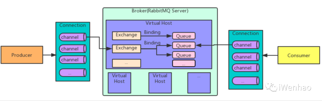 public static void main(String[] args) throws IOException, TimeoutException {/*** 工作队列模式 work_queue 其实和 hello world 相似 都没有交换机 exchange(默认有个虚拟的交换机)** 区别:hello world 只有一个消费者(虚拟交换机绑定一个队列), work queue 有多个消费者(虚拟交换机绑定多个队列)*/Connection connection = RabbitMqUtils.getConnection();Channel channel = connection.createChannel();channel.queueDeclare("work_queue_test", false, false, false, null);for (int i = 1; i <= 100; i++) {String msg = "工作队列模式 消息---》 " + i;channel.basicPublish("", "work_queue_test", null, msg.getBytes());}channel.close();connection.close();}