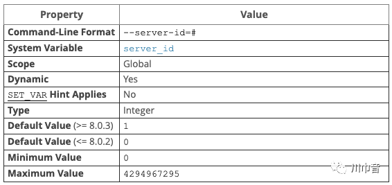 server-id用于标识数据库实例,防止在链式主从、多主多从拓扑中导致SQL语句的无限循环: