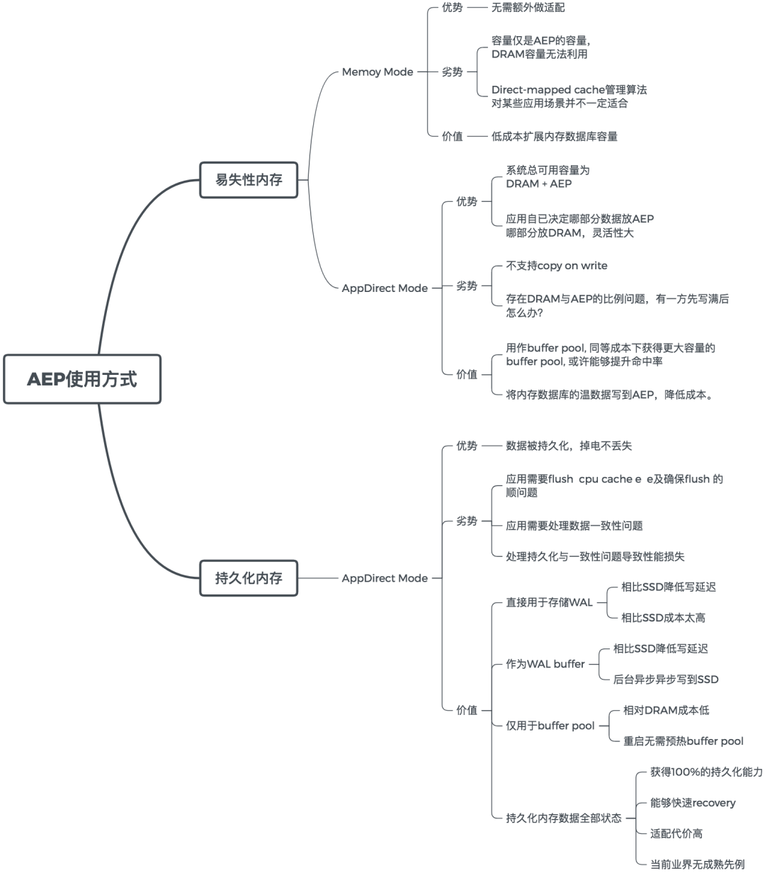 AEP有两种工作模式:Memory Mode和App Direct Mode,如果细分就还有Storage Over App Direct。