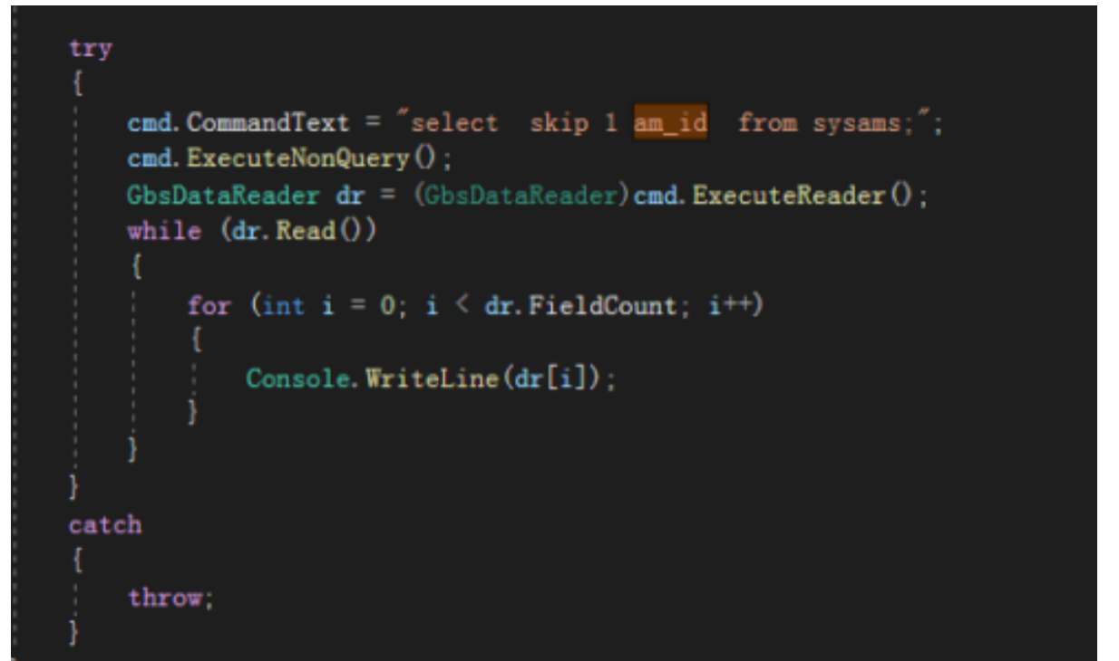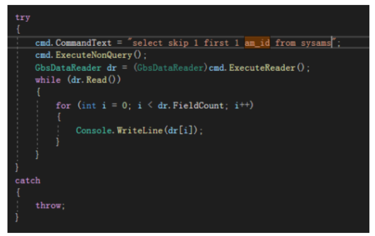 GbsDataReader dr = (GbsDataReader)cmd.ExecuteReader();